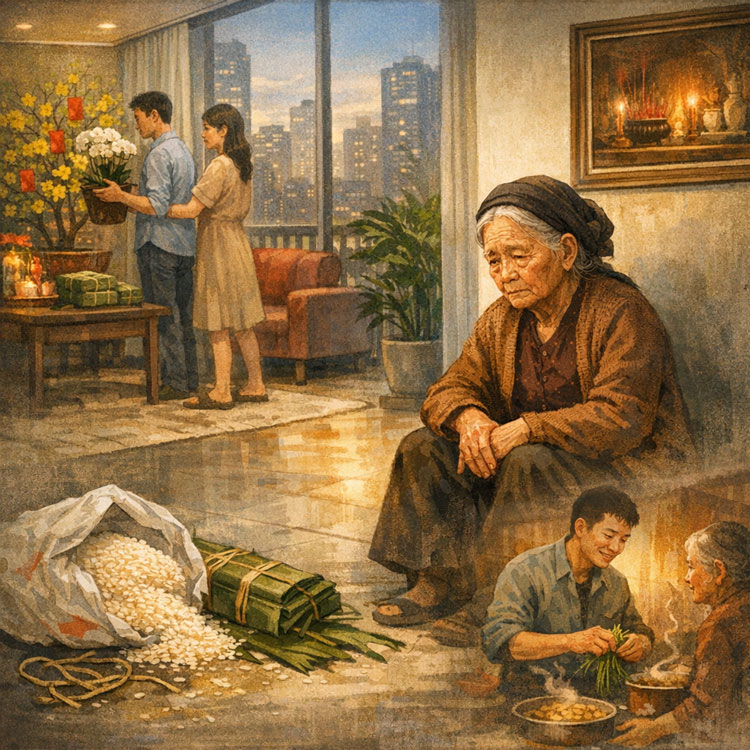 (TSVN) – Tôi thích nhất là tháng giáp Tết, dù hồi đó má hay than với tôi tháng ấy thì bận rộn. Nào là gặt lúa, suốt lúa, phơi lúa, trồng cải, trồng cà, sửa sang cửa nhà, trồng thêm ít hoa xanh đỏ tím vàng… chờ Tết ngắm. Ngày tôi còn ở nhà, hễ thấy nắng cuối năm là tôi nôn nao trong lòng. Đi ngang qua những cánh đồng thấy lúa chín vàng ươm, hương lúa thơm thoang thoảng hoà lẫn trong mùi của nắng giòn tan trên những mái nhà liêu xiêu dưới vòm trời xanh biêng biếc, tâm hồn tôi cứ lâng lâng nương theo chiều gió thổi.