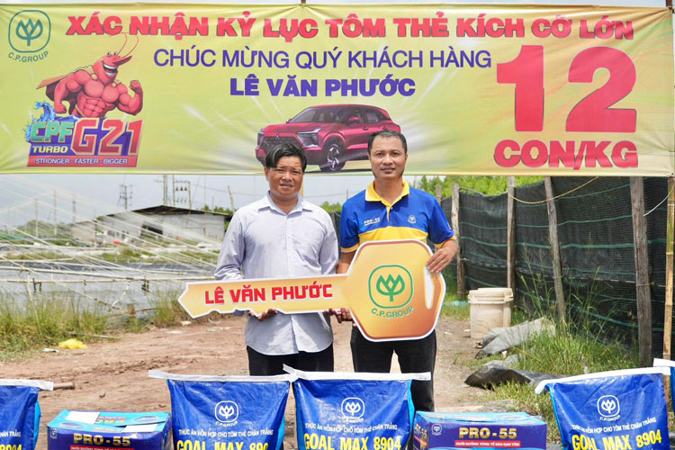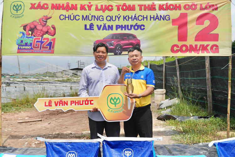 Đến năm 2025, hệ thống hơn 40 ao nuôi công nghệ cao của anh đã trở thành minh chứng cho hành trình bền bỉ và khát vọng vươn tới đỉnh cao. Với tôm giống CPF-Turbo G21, anh Lê Văn Phước xuất sắc chinh phục cột mốc 10,9 con/kg – kỷ lục của mọi kỷ lục trong nuôi tôm kích cỡ lớn, khẳng định vị thế người tiên phong trên hành trình nâng tầm con giống Việt.