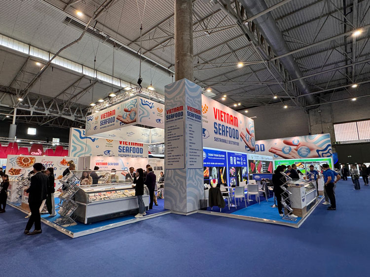 Một số hình ảnh doanh nghiệp Việt Nam tham dự Hội chợ thủy sản toàn cầu 2025. Ảnh: VASEP: