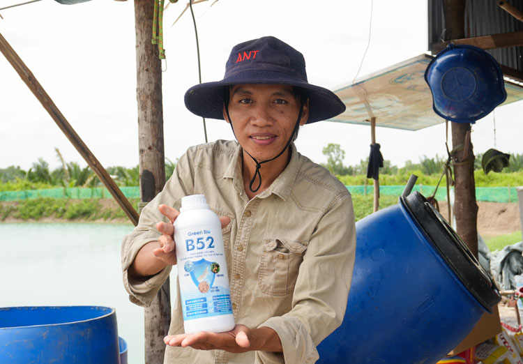 “Trước đây, hễ tôm bị phân trắng là coi như bỏ ăn hẳn, hao hụt nhiều lắm. Vậy mà dùng B52 cỡ 2 ngày thôi là tôm đi phân bình thường, ăn mạnh lại, hay cái nữa là sau khi hết bệnh tôm vẫn phát triển tốt, không bị chậm lớn”, anh Hậu – hộ nuôi 5ha tại Bạc Liêu chia sẻ.