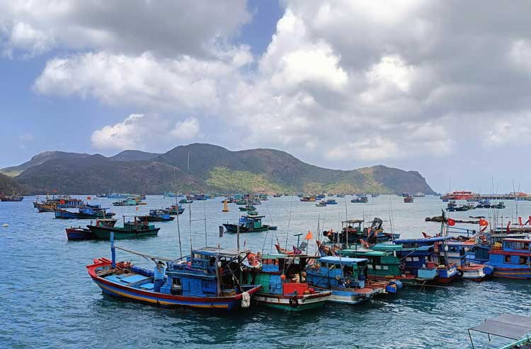Bà Rịa-Vũng Tàu hiện có hơn 1.000 tàu cá trên 15m được đơn vị đăng kiểm cấp giấy chứng nhận an toàn kỹ thuật tàu cá phân cấp tàu theo mức hạn chế II, chỉ được hoạt động tại vùng biển cách xa bờ hoặc nơi trú ẩn không quá 50 hải lý. Trong ảnh: Tàu cá neo đậu ở Cảng Bến Đầm, huyện Côn Đảo.