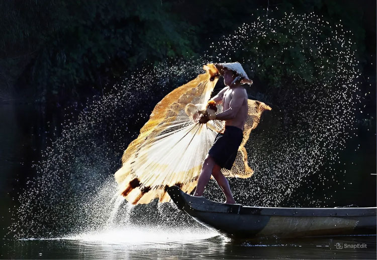 Bức ảnh ngư dân quăng chài trên sông Hương của Nhiếp ảnh gia Nguyễn Trừng trên Báo Tuổi trẻ.