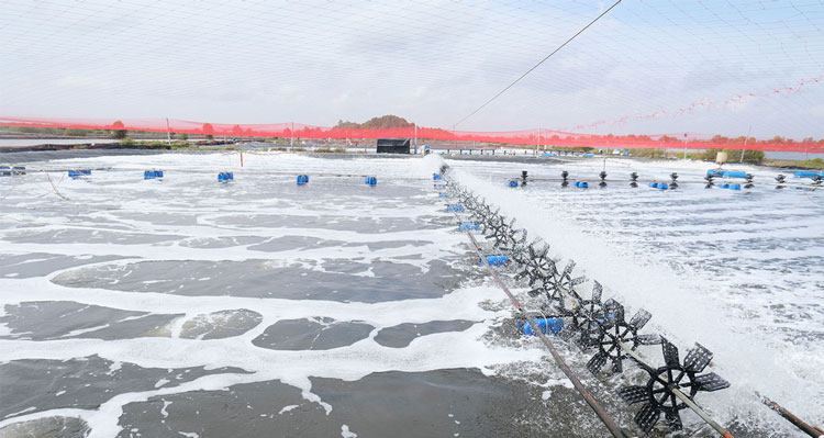 Quản lý bùn đáy ao và chất lượng nước bằng chế phẩm sinh học, tránh để hiện tượng tảo tàn, tảo độc phát triển trong ao nuôi khi nhiệt độ nước cao và nắng kéo dài.