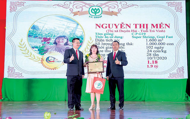 Cô Mến được vinh danh tại hội nghị khách hàng CPF-Combine 2021 của C.P. Việt Nam. Ảnh: C.P