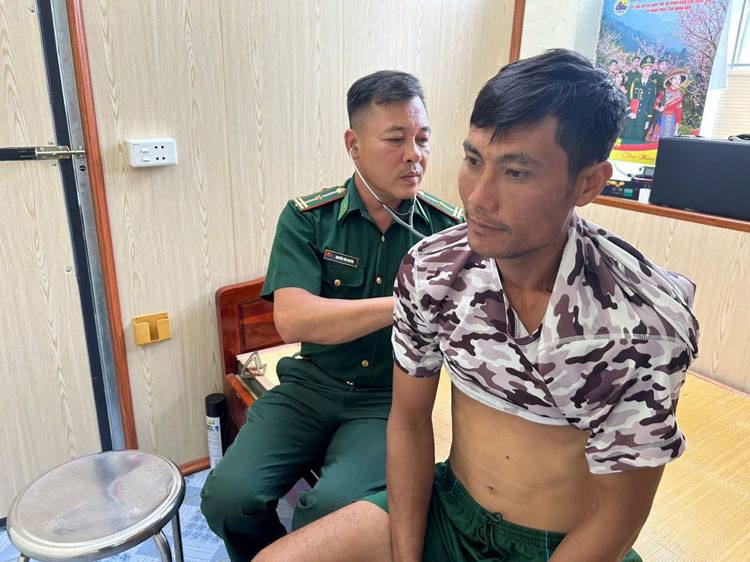 Lực lượng quân y Đồn Biên phòng Bắc Sơn kiểm tra sức khỏe cho ngư dân Đoàn Văn Quảng. Ảnh: Hoàng Hà