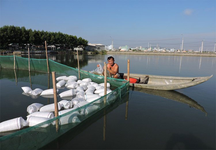 Trong quá trình triển khai, hộ nuôi luôn tuân thủ đúng quy trình kỹ thuật đã được hướng dẫn từ khâu cải tạo ao, xử lý nước, thả giống, đến các bước chăm sóc quản lý, phòng bệnh… Hơn nữa, do ao nuôi là ao sinh thái có cây ngập mặn, đồng thời, ven bờ nên việc kết hợp nuôi ghép còn tạo điều kiện phát triển cho cây ngập mặn và khi phát triển tốt những rừng cây này tạo môi trường sống tích cực cho vật nuôi trong ao.