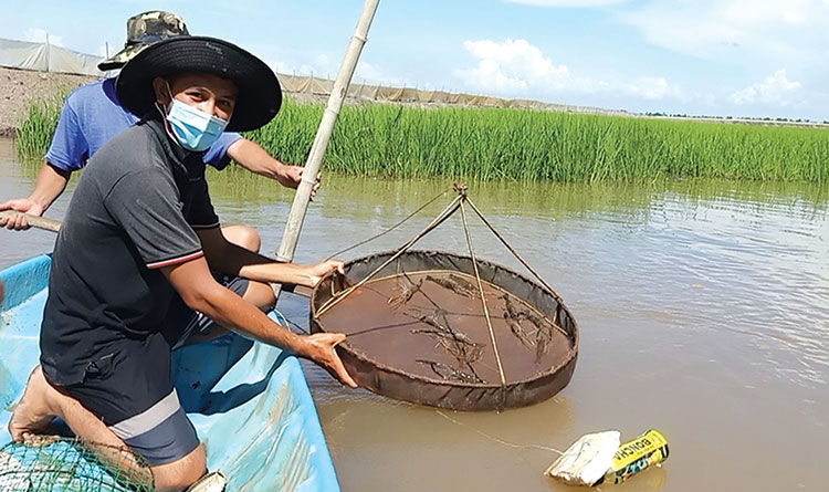 Nuôi tôm trong ruộng lúa giúp anh Nhân thu hoạch từ 750 – 900 triệu đồng