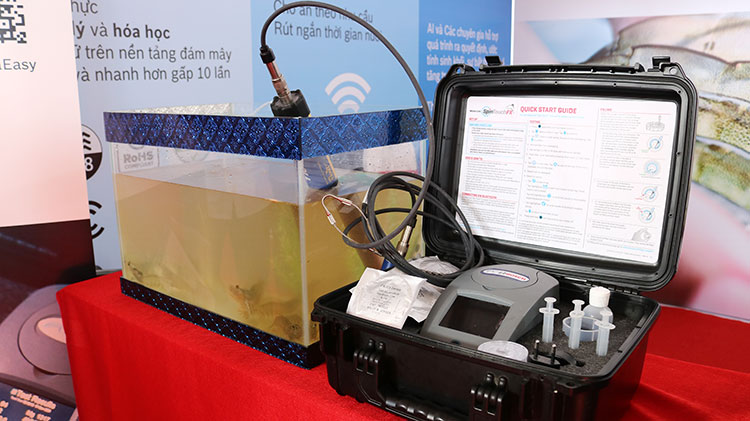 Phòng lab thông minh và di động của AquaEasy có thể cung cấp kết quả phân tích tình trạng của ao tôm trong 60 giây