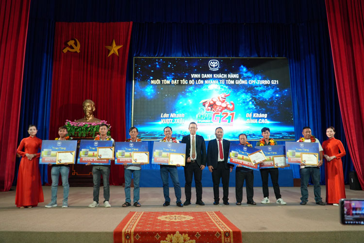 Ngoài phần trình bày về sản phẩm, hội thảo còn ghi nhận và tôn vinh các khách hàng tiêu biểu đã ứng dụng thành công hai dòng giống chủ lực của tập đoàn là CPF TURBO G21 và CPF SUPER MONODON. Đây là những giống tôm được đánh giá cao về khả năng thích nghi, tốc độ tăng trưởng và chất lượng thịt, góp phần nâng cao năng suất và giá trị trong mô hình nuôi công nghệ cao.