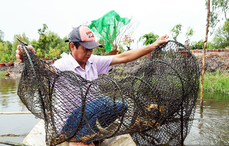 Mô hình nuôi tôm – cua kết hợp giảm chi phí, tốn ít công chăm sóc. Ảnh: CTV