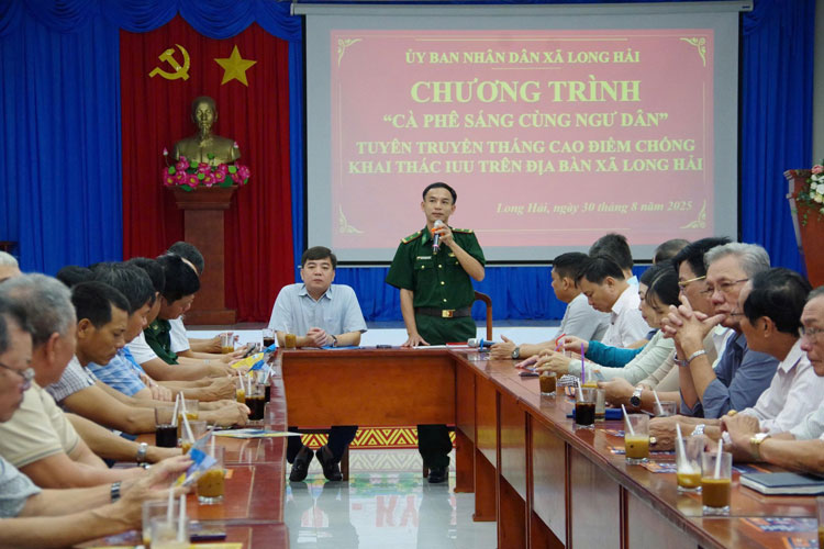 (TSVN) – Mới đây, tại xã Long Hải, UBND xã phối hợp Đồn Biên phòng Phước Tỉnh (TP. Hồ Chí Minh) tổ chức chương trình “Cà phê sáng cùng ngư dân”, nhằm tuyên truyền trong tháng cao điểm về chống khai thác thủy sản bất hợp pháp, không báo cáo, không theo quy định (IUU).