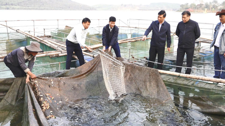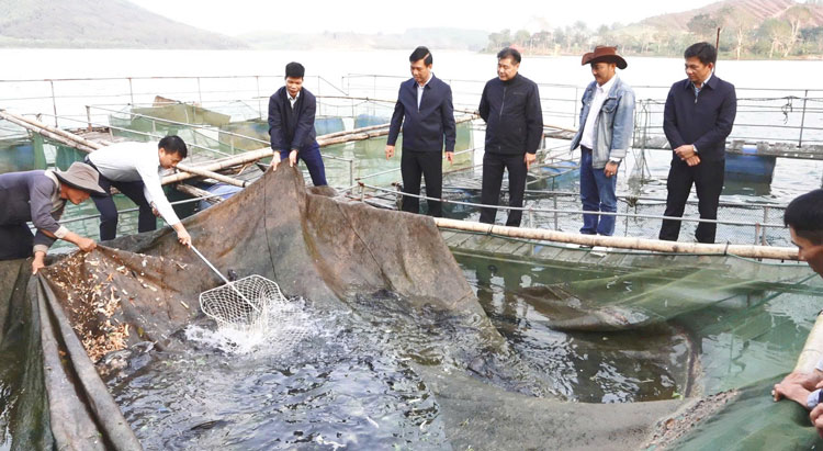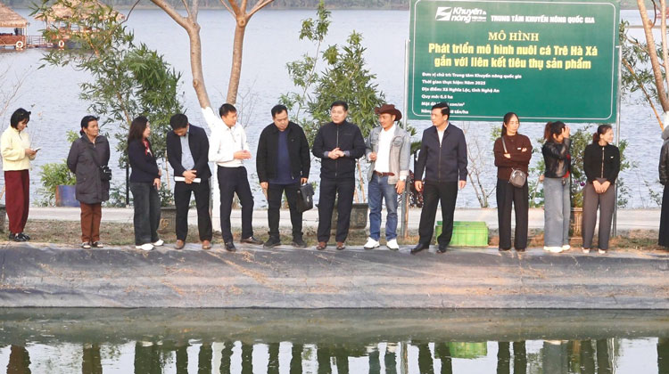 Trong khuôn khổ chuyến công tác, đoàn đã trực tiếp thăm mô hình nuôi cá trê Hà Xá tại xã Nghĩa Lộc. Chủ mô hình là anh Đặng Trọng Tấn, người dân địa phương có nhiều tâm huyết với phát triển kinh tế nông nghiệp gắn với du lịch. Mô hình được triển khai trên diện tích 0,5 ha tại khu vực đập Hòn Mát, nơi có điều kiện mặt nước và cảnh quan thuận lợi cho nuôi trồng thủy sản.