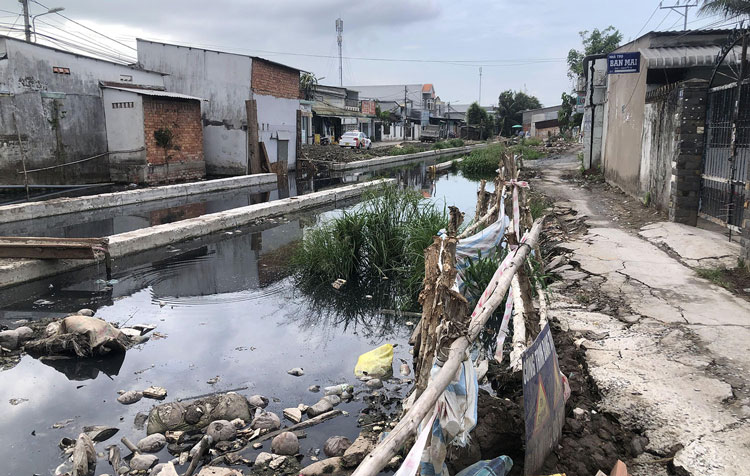 Rạch Mương Củi, một trong 14 con rạch ở trung tâm thành phố Cần Thơ, kéo dài cảnh cải tạo dang dở gây nhiều khó khăn cho cuộc sống người dân
