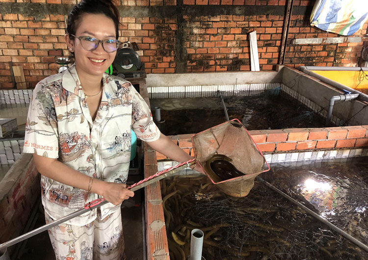 Cô Hoàng Thị Diệu Huyền với lươn đạt 2 – 3 con/kg