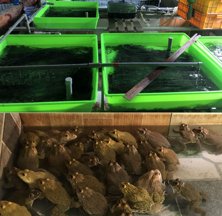 Hồ xây bê tông hoặc bằng composite có hệ thống cấp và thoát nước gọn gàng, bố trí khoa học bên lối đi thuận tiện. Trên có mái che mát mẻ. Nước từ giếng khoan, máy bơm theo chế độ tự động, ngày thay nước 3 lần nên hồ luôn trong sạch. Nhìn vào hồ nuôi lươn thấy rõ hàng ngàn con xếp lớp rất đẹp mắt. Còn hồ nuôi ếch gần kỳ xuất bán, ếch cũng xếp lớp và có đủ nước sạch nên ngồi im, không nhảy xôn xao. Hồ ương dưỡng cá chình giống thấy từng mảng lượn mềm mại.