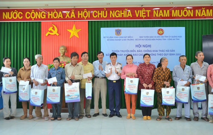 Được biết, từ năm 2019 đến nay, Bộ Tư lệnh Vùng cảnh sát biển 2 phối hợp với Ban Tuyên giáo và Dân vận Tỉnh ủy Quảng Ngãi tổ chức 19 đợt tuyên truyền cho hơn 9.000 lượt ngư dân và nhân dân; tổ chức 14 chương trình “Cảnh sát biển đồng hành với ngư dân” kết hợp tuyên truyền IUU; tổ chức 5 Cuộc thi “Em yêu biển đảo quê hương; tổ chức Chương trình công tác dân vận “Cảnh sát biển với đồng bào dân tộc, tôn giáo” tại 5 huyện miền núi của tỉnh tặng hơn 2.700 suất quà trị giá gần 5 tỷ đồng cho nhân dân, ngư dân, đồng bào dân tộc, tôn giáo, học sinh.