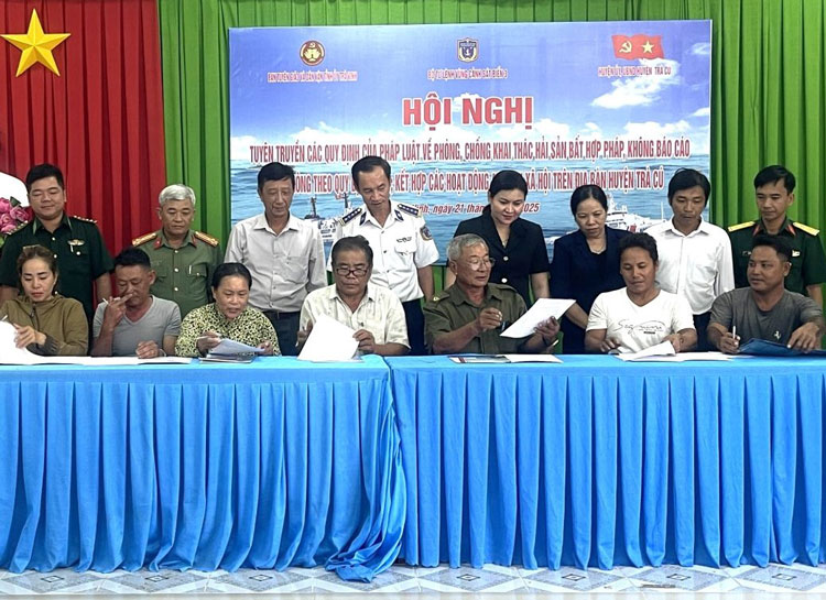 Bộ Tư lệnh vùng Cảnh sát biển 3 phối hợp với chính quyền địa phương cho ngư dân ký cam kết không vi phạm khai thác IUU