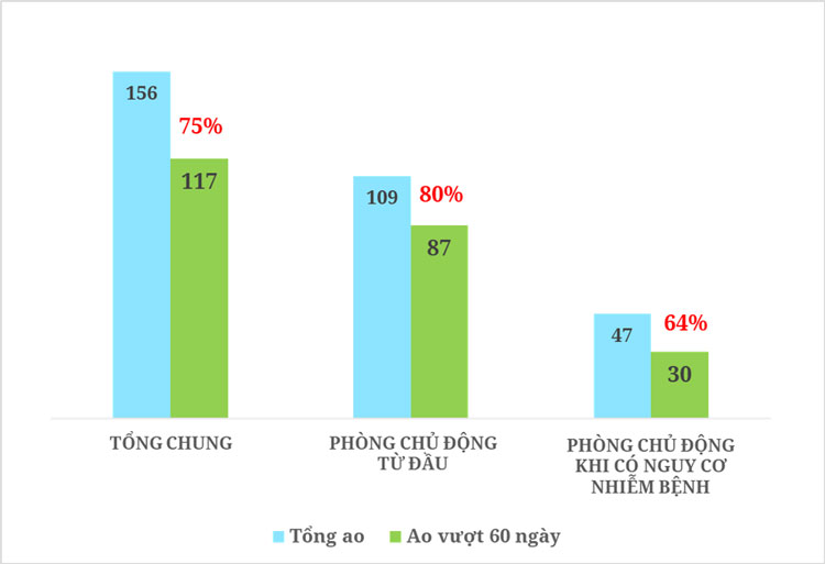 Biểu đồ 1: Tỷ lệ ao nuôi vượt qua 60 ngày khi áp dụng “Bộ Đôi”