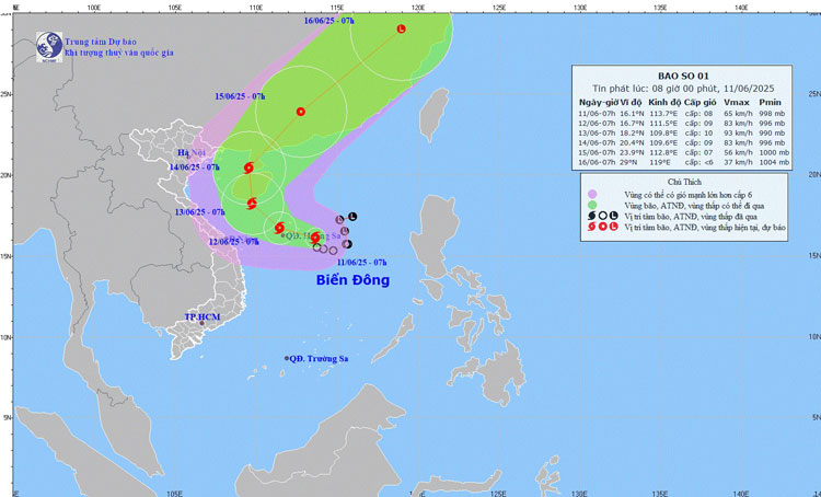 (TSVN) – Sáng nay (11/6), áp thấp nhiệt đới đã mạnh lên thành bão số 1 trên Biển Đông, cơn bão đầu tiên trong năm 2025, có tên quốc tế là Wutip. Đây là thông tin mới nhất từ Trung tâm Dự báo Khí tượng Thủy văn Quốc gia.