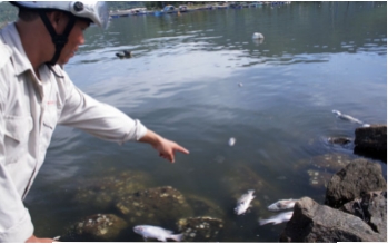 Ngày 25/8 tại vịnh Mân Quang (Q. Sơn Trà, TP. Đà Nẵng) xuất hiện tình trạng cá nuôi có giá trị kinh tế cao như cá dìa, cá mú, cá hanh tại 15 lồng bè của người dân chết hàng loạt (ảnh).