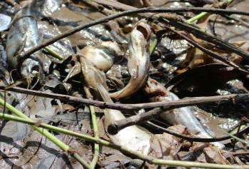 Sáng 4/8, theo tin báo của người dân, phóng viên có mặt tại khu vực rạch Tây Ninh, phát hiện thấy hiện tượng cá nổi đầu và chết hàng loạt.