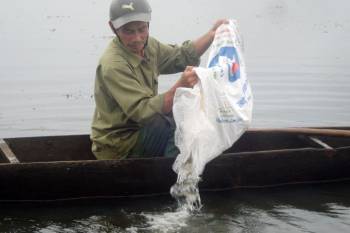 Chiều 14/10, tại khu vực hồ tự nhiên xã Ia Băng, huyện Đak Đoa, Trung tâm Giống thủy sản Gia Lai phối hợp với Phòng Nông nghiệp và PTNT và UBND xã Ia Băng tổ chức thả 8 vạn con cá giống gồm: cá trắm, chép, mè hoa, trôi, mè vinh… ra lòng hồ rộng khoảng 45 ha, để khôi phục tái tạo lại nguồn lợi thủy sản đang ngày càng cạn kiệt do lối đánh bắt bằng các loại lưới chuyên dụng hay xung điện.