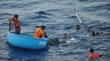 Trong một chuyến đi biển trải qua hơn hai giờ, các ngư dân mới gỡ được 29 con cá heo ra khỏi vòng vây của lưới để thả chúng trở lại với biển khơi.