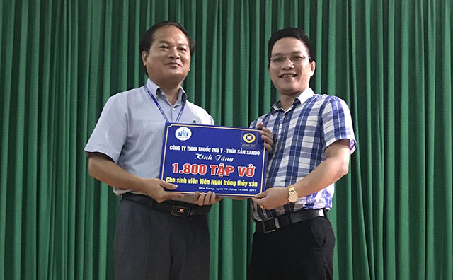 Lãnh đạo Công ty Sando đã trao tặng 1.800 tập vở cho sinh viên Viện Nuôi trồng Thủy sản