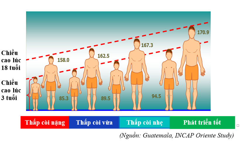 Chúng ta không thể biết rằng khi trẻ 2 – 3 tuổi rơi vào tình trạng thấp còi thì sẽ dẫn tới thấp còi khi trưởng thành. Không những vậy, trẻ SDD về thể trạng cũng sẽ ảnh hưởng rất lớn sự phát triển của trí não. Một trong những nguyên nhân của tình trạng này là do chế độ dinh dưỡng của bà mẹ chưa hợp lý trong thời gian mang thai và cho con bú.
