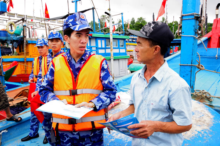 (TSVN) – Ngày 3.11, Hải đội 23, Bộ Tư lệnh Vùng Cảnh sát biển 2 phối hợp Đồn Biên phòng Bình Thạnh tuyên truyền pháp luật cho ngư dân xã Vạn Tường (Quảng Ngãi).