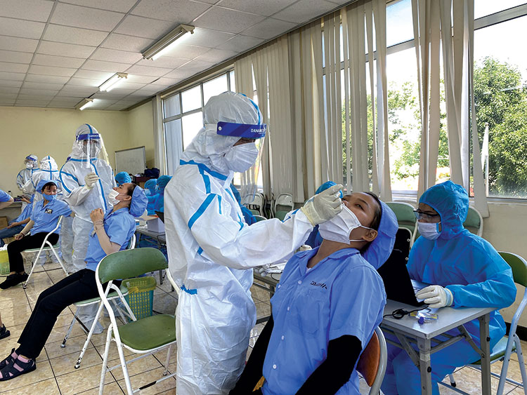 Là người đứng đầu của một doanh nghiệp đã thực hiện “3 tại chỗ” kể từ tháng 7/2021 với khoảng 350 nhân viên, TS Nguyễn Thanh Mỹ cho biết: “Do thực hiện quy trình 5K, mỗi tuần chúng tôi phải mất hơn 4 giờ để lần lượt tập trung tất cả nhân viên từ các bộ phận đến để lấy mẫu xét nghiệm. Trung bình hoàn tất lấy mẫu cho gần 100 người nên để xét nghiệm cho toàn bộ nhân viên phải hết hơn nửa ngày. Mỗi lần xét nghiệm như vậy hết 60 triệu đồng, một tháng là 240 triệu đồng. Do đó, cộng thêm việc mỗi tuần phải dừng sản xuất nửa ngày để lấy mẫu, doanh nghiệp chúng tôi mất doanh thu gần 4 tỷ đồng/tháng”.