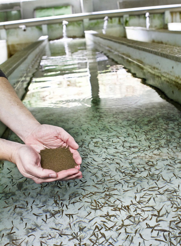 Trong giai đoạn đầu đời, điều quan trọng là hỗ trợ cá bột và cá giống tăng trưởng một cách khỏe mạnh bằng thức ăn chất lượng cao và thành phần phù hợp nhất với nhu cầu của cá. Thành phần dinh dưỡng trung bình trong giai đoạn này bao gồm 54% đạm và 18% chất béo, chủ yếu đến từ các nguyên liệu có nguồn gốc sinh vật biển chất lượng cao để đảm bảo độ ngon miệng và hấp dẫn đối với cá. Việc cung cấp hàm lượng đạm cao trong giai đoạn đầu này là rất quan trọng để tạo nền tảng cho sự phát triển của cơ và các cơ quan.