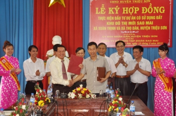 Lễ ký kết được thực hiện giữa Tập đoàn Sao Mai và UBND huyện Triệu Sơn (Thanh Hóa) diễn ra sáng 12/5/2015 tại Hội trường UBND huyện Triệu Sơn.