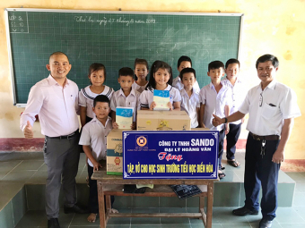 Nhân dịp đầu năm học mới 2019 – 2020, ngày 27/8 và 4/9/2019, Công ty TNHH SanDo phối hợp cùng với các Đại lý đã trao tặng tập vở cho các em học sinh có hoàn cảnh khó khăn tại các trường tiểu học ở Huế và Đồng Tháp.