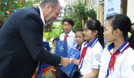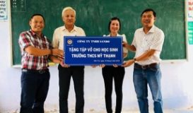 Nhân dịp khai giảng năm học mới 2018 – 2019, Công ty TNHH Sando đã tặng 1.000 cuốn vở cho học sinh Trường THCS Mỹ Thạnh (xã Mỹ Thạnh, huyện Ba Tri, Bến Tre).