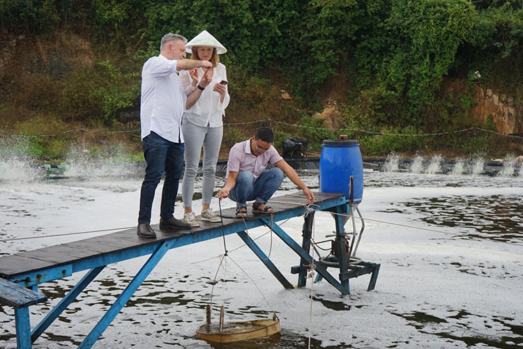 Một trong những hành trình thú vị của các thành viên tham gia là đi thăm khách hàng tại khu vực miền Trung. Tại đây các lãnh đạo đã gặp và trao đổi với các khách hàng nuôi tôm, đồng thời chia sẻ với khách hàng những định hướng chiến lược về phát triển bền vững và nghiên cứu phát triển thêm các giải pháp mới phục vụ cho khách hàng nhằm mang lại các vụ mùa bội thu.