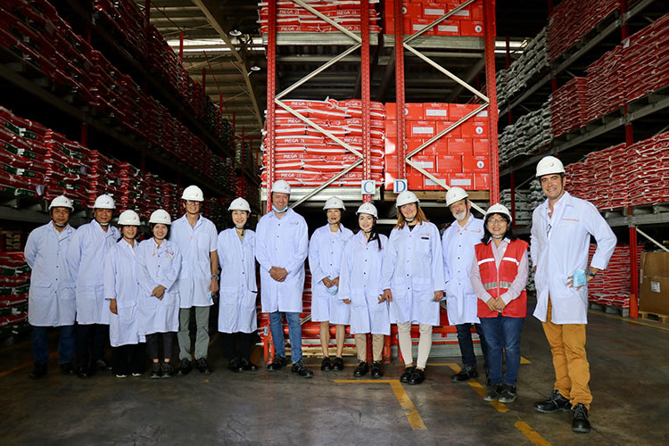 Ban lãnh đạo thăm nhà máy thức ăn cho tôm của Skretting Việt Nam. Ảnh: SK