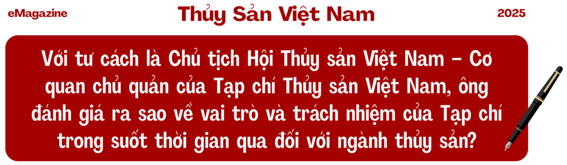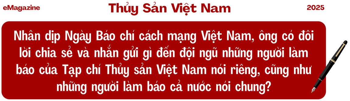 TS. Nguyễn Việt Thắng: Tạp chí Thủy sản Việt Nam là cơ quan ngôn luận của Hội Thủy sản Việt Nam, đồng thời là một trong những tạp chí chuyên ngành có bề dày truyền thống và uy tín trong lĩnh vực thủy sản. Suốt nhiều năm qua, Tạp chí đã khẳng định được vị thế là kênh thông tin chuyên sâu, thiết thực và đáng tin cậy đối với cộng đồng người nuôi trồng, khai thác, chế biến và xuất khẩu thủy sản trên cả nước.