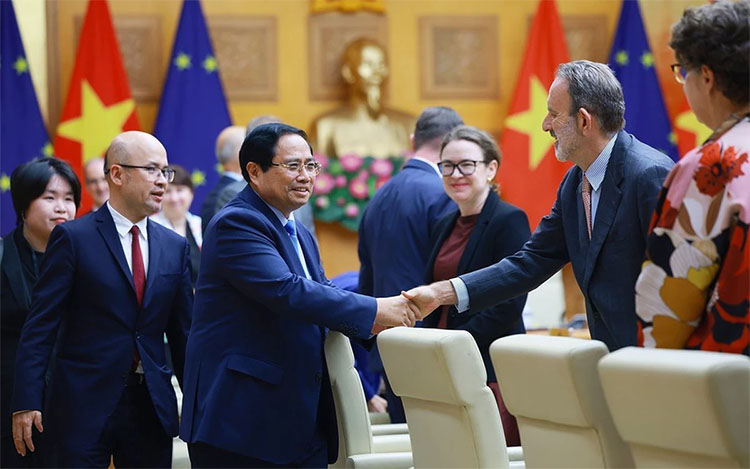 Chiều ngày 5/3, tại trụ sở Chính phủ, Thủ tướng Phạm Minh Chính đã có cuộc gặp mặt trọng thị với 20 đại sứ, đại biện EU và các nước thành viên EU tại Hà Nội nhân dịp đầu năm mới. Sự kiện này mang ý nghĩa đặc biệt khi diễn ra trong bối cảnh Việt Nam vừa tổ chức thành công Đại hội đại biểu toàn quốc lần thứ XIV của Đảng, đồng thời quan hệ Việt Nam – EU chính thức được nâng cấp lên mức Đối tác chiến lược toàn diện. Khuôn khổ quan hệ mới này không chỉ phản ánh mức độ tin cậy chính trị ngày càng cao mà còn tạo động lực to lớn để mở rộng hợp tác trên mọi lĩnh vực.