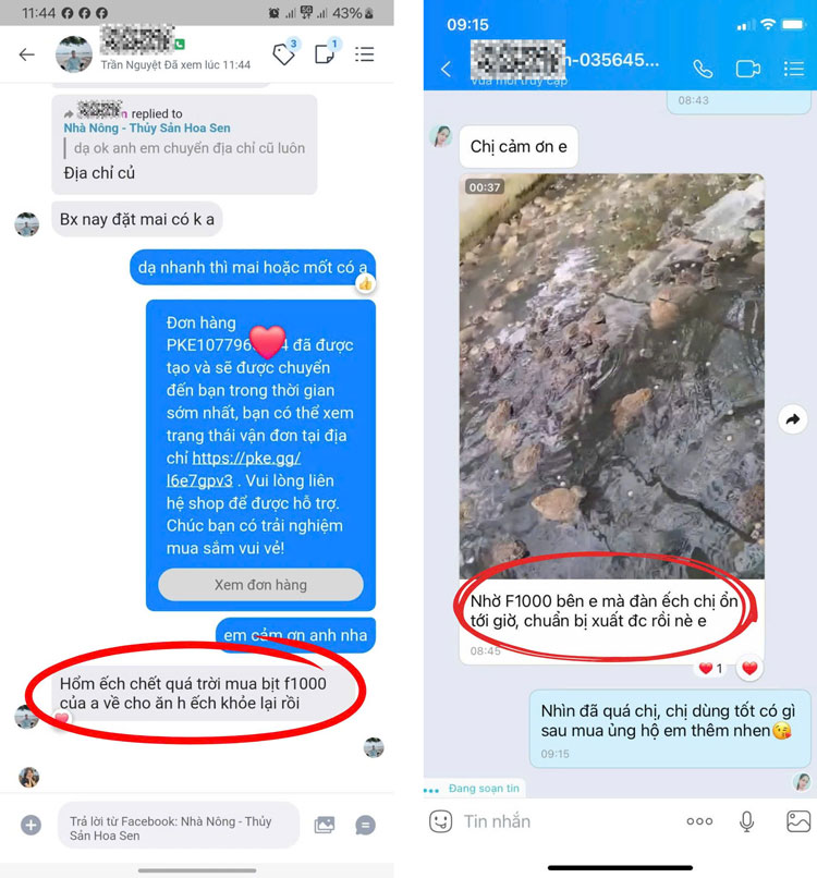 Một ví dụ khác là farm của anh Văn ở Tây Ninh, anh đã nhiều lần định bỏ nghề vì các vụ liên tiếp thất bại, thiệt hại kinh tế lớn. May mắn là anh biết đến F1000 kịp thời nên các vụ sau cải thiện hẳn. “Tôi dùng thử 1 đợt là thấy hiệu quả liền, ếch phục hồi nhanh và không còn nhiễm bệnh trở lại. Giờ vụ nào tôi cũng dùng F1000 phòng từ trước để có năng suất tốt”, anh Văn – một khách hàng thân thiết của Nông nghiệp Hoa Sen chia sẻ.