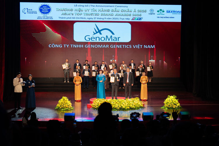 (TSVN) – Ngày 27/9, tại TP. Hồ Chí Minh, Công ty TNHH GenoMar Genetics Việt Nam được vinh danh “Thương hiệu uy tín hàng đầu châu Á – Asia’s Top Trusted Brand Awards 2025”, do Liên hiệp Khoa học Phát triển Doanh nghiệp Việt Nam tổ chức và Tạp chí Doanh nghiệp & Thương mại trao tặng.