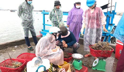 Lo ngại bão số 12 sẽ đổ bộ vào các tỉnh từ Phú Yên đến Ninh Thuận gây thiệt hại, người dân nuôi trồng thủy sản trên biển ở huyện Vạn Ninh (tỉnh Khánh Hòa) đã bắt tôm, cá bán chạy bão.