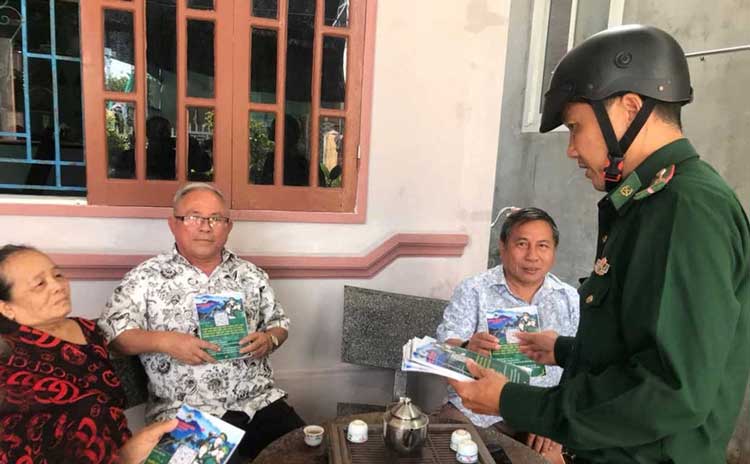 Cán bộ Đồn Biên phòng Cát Khánh (xã Đề Gi) đến tận nhà vận động ngư dân phòng-chống khai thác hải sản bất hợp pháp. Ảnh: N.N