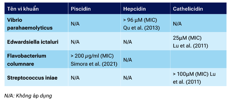 Peptide kháng khuẩn được xem là một thành phần của hệ miễn dịch tự nhiên của cá. Phần lớn các peptide kháng khuẩn có nguồn gốc từ động vật có và không có xương sống và sẽ hoạt động theo cơ chế không cần thụ thể. Ưu điểm của peptide kháng khuẩn có khả năng bảo vệ vật chủ chống lại nhiều mầm bệnh, duy trì hiệu quả trong điều kiện môi trường bất lợi, khả năng xảy ra hiện tượng kháng kháng khuẩn thấp. Có năm loại peptide kháng khuẩn phổ biến là Piscidins, Defensins, Hepcidines, Cathelicidins, and Histone.