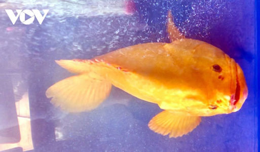 Con cá mú rất đặc biệt khi toàn thân có màu vàng óng, đã có người trả 200 triệu đồng nhưng chủ nhân không bán.