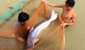 Con cá tra này có tuổi đời gần 20 năm, cân nặng hơn 30 kg và dài gần 1,5 m được nuôi trong ao vườn của ông Đặng Văn Khanh ở xã Tân Phước, huyện Lai Vung (Đồng Tháp).