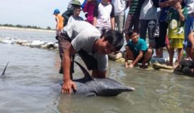 Khoảng 7 giờ sáng 25/6, người dân trong hẻm 112 Chi Lăng (phường 12, TP. Vũng Tàu) phát hiện một con cá heo nặng khoảng 70 kg, dài hơn 1 m mắc kẹt ở con lạch sát khu Đồi Nhái và họ đã dìu con cá này vào vũng nước trong bờ.