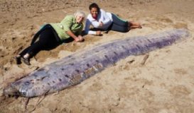 Con cá mái chèo dài hơn 5 m dạt vào bờ biển Los Angeles, Mỹ hôm 1/6 khiến nhiều người ngạc nhiên.