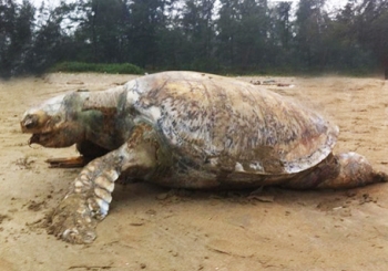 Một con đồi mồi đã chết trôi dạt vào bờ biển, được ngư dân đưa lên bờ và chôn cất vào sáng 2/2 ở vùng biển Quỳnh Lưu, Nghệ An.