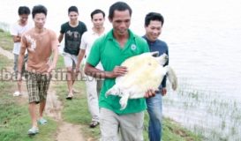 Sáng 26/10, Phòng NN&PTNT huyện Nghi Xuân cùng với người dân xã Xuân Trường tiến hành thả một con rùa biển nặng hơn 10kg sau khi trôi dạt vào bờ.
